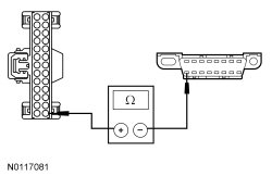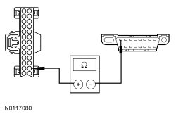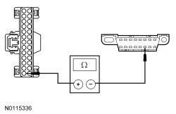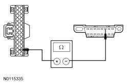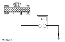 - Measure the resistance between the IPC (Instrument Panel Cluster) C220-5, circuit GD115 (BK/GY), harness side and ground.