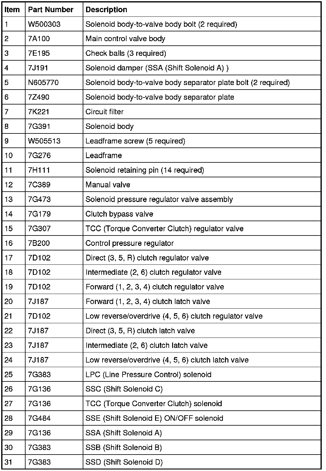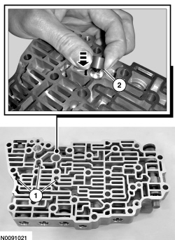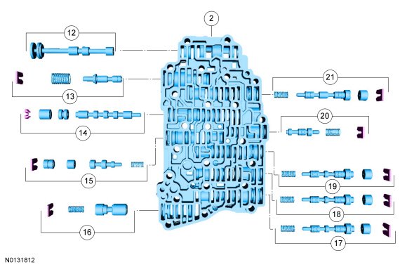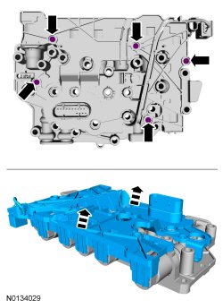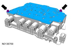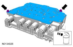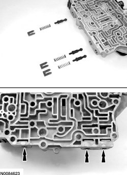 30. NOTICE: If the valves do not move freely during assembly, install a new solenoid body. Failure to install a new solenoid body can result in a harsh shift or damage to the transmission.