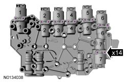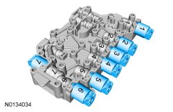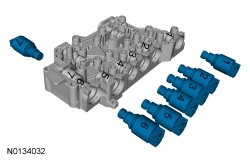 21. NOTICE: The solenoids are calibrated from the factory and are not all the same. Failure to install the solenoids in the ports they were originally in can result in damage to the transmission or a harsh shift.