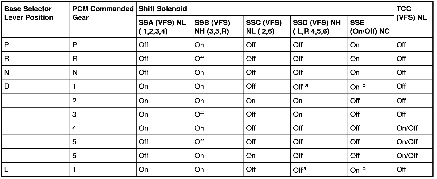 Solenoid Operation Chart