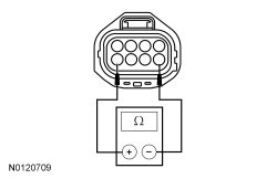 - Measure the resistance between AWD (All-Wheel Drive) relay module, C4379-5, circuit CCF21 (VT/WH), harness side and AWD (All-Wheel Drive) relay module C4379-8, circuit RCF21 (WH/VT), harness side.