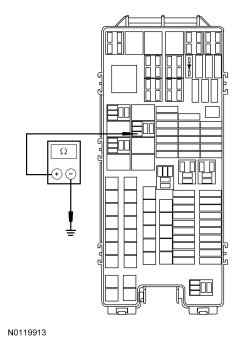 - Measure the resistance between ground and blower motor relay socket pin 2, circuit CH123 (VT/GN) and ground.