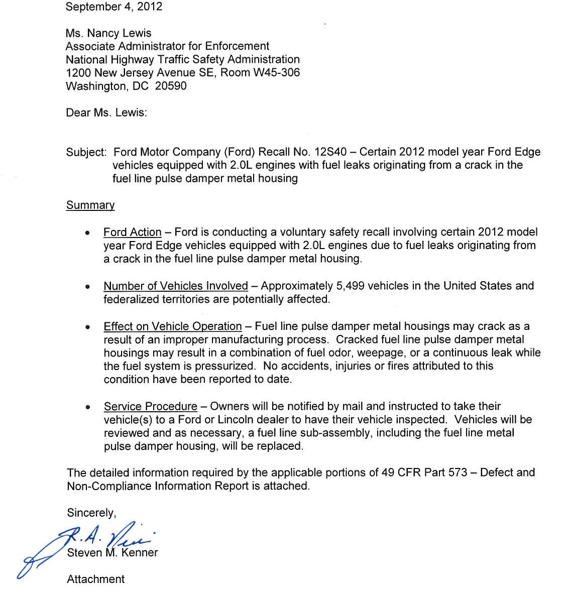NHTSA Letter