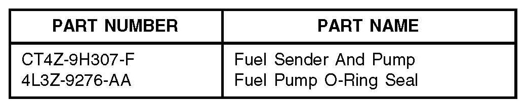 5. Replace fuel pump module and fuel pump module 0-ring seal. Refer to WSM, Section 310-01.