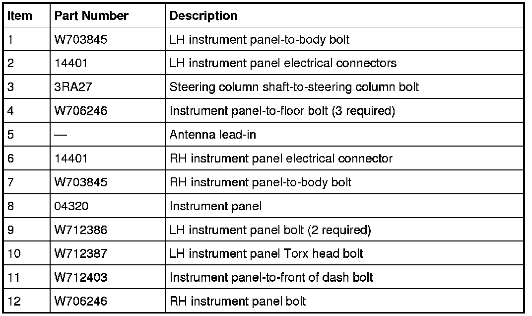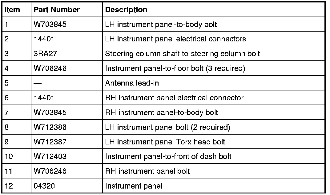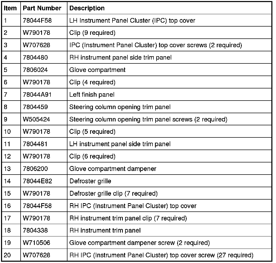 MKX Instrument Panel Fasteners
