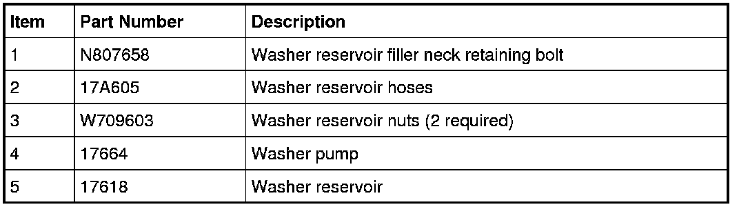 Wiper and Washer System - Exploded View, Washer Pump and Reservoir
