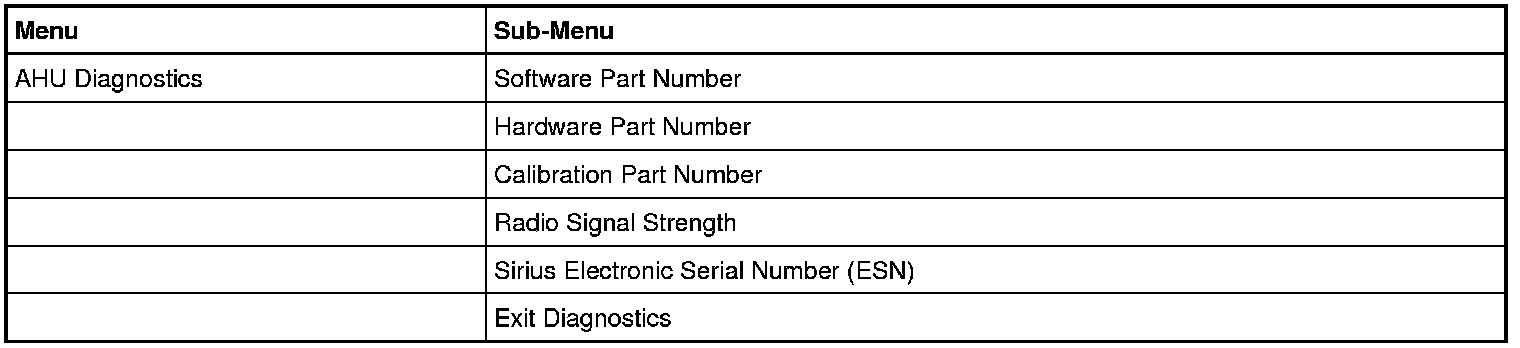 NOTE: The AHU Diagnostics refers to the ACM (Audio Control Module) and EFP Diagnostics refers to the Front Controls Interface Module (FCIM).