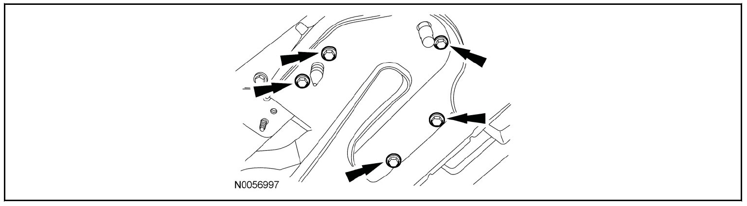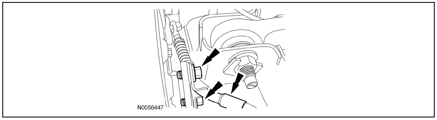 14. Remove the 4 front (2 each side) bushing brace-to-body bolts.
