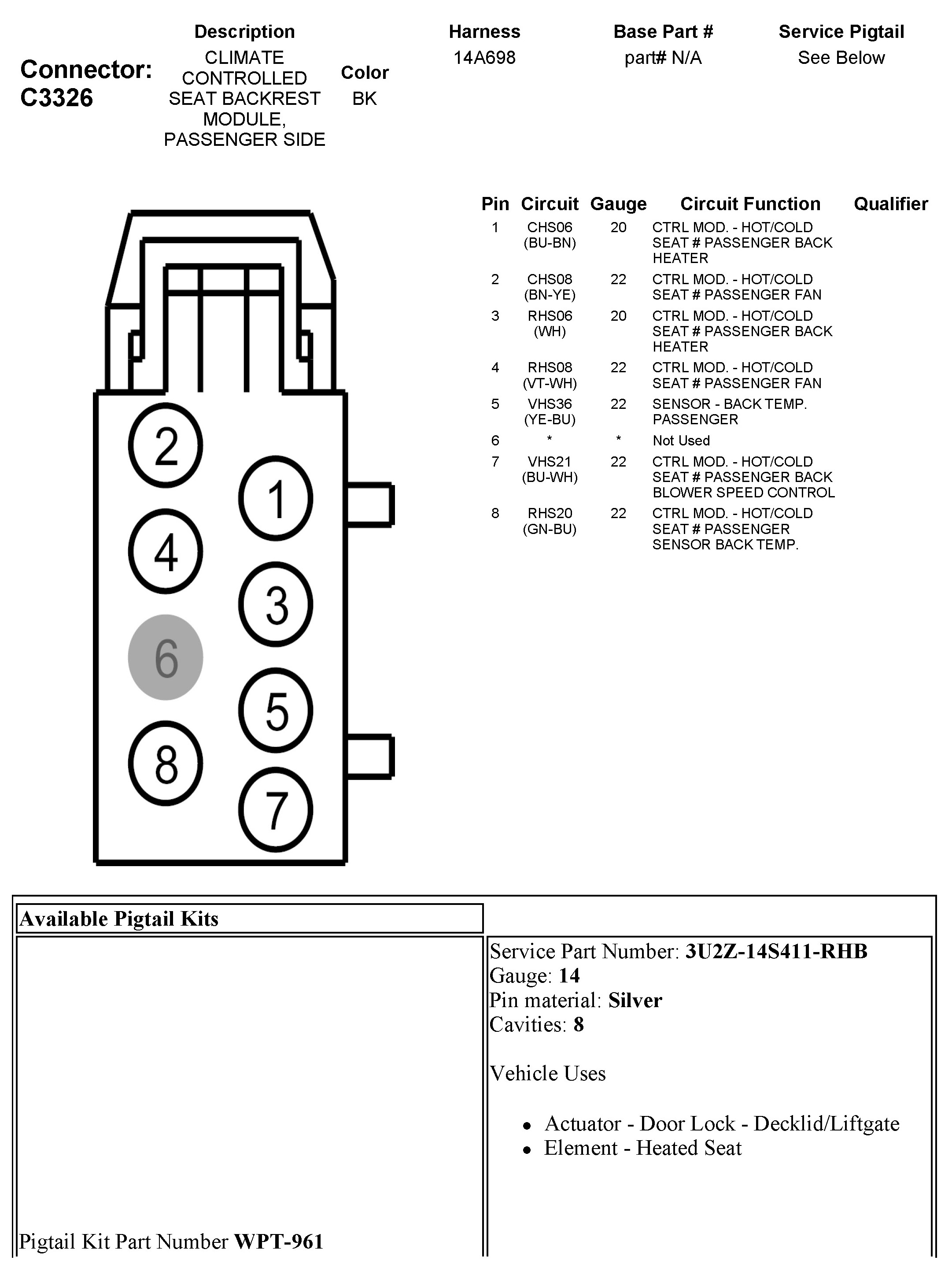 C3326 Climate Controlled Seat Backrest Module, Passenger Side