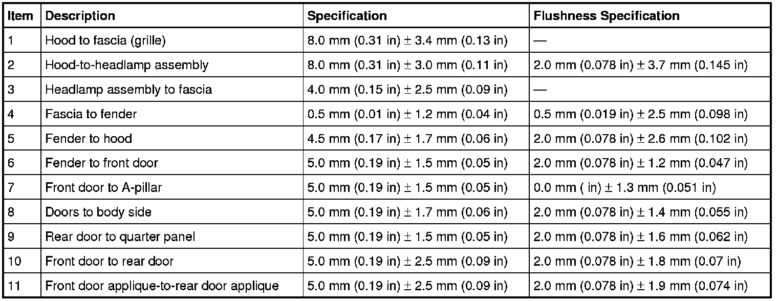Body Side Closure Dimensions