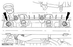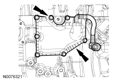NOTICE: During engine repair procedures, cleanliness is extremely important. Any foreign material (including any material created while cleaning gasket surfaces) that enters the oil passages, coolant passages or the oil pan, can cause engine failure.