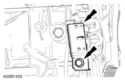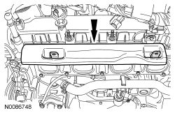 21. Disconnect the Variable Camshaft Timing (VCT) oil control solenoid electrical connector and detach the wiring harness retainer from the valve cover stud bolt.