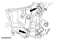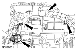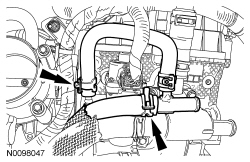 24. Disconnect the EGR coolant hose and the auxiliary coolant pump hose.