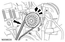 10. Rotate the accessory drive belt tensioner counterclockwise and remove the accessory drive belt.