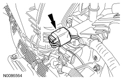3. Release the locking tab and disconnect the Heated Oxygen Sensor (HO2S) electrical connector.
