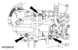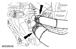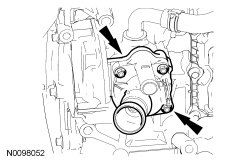 - Remove the upper radiator hose and the auxiliary coolant pump as an assembly.