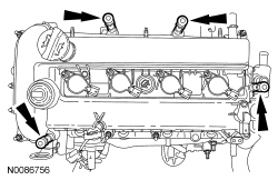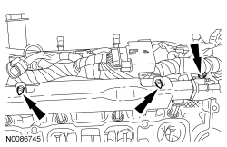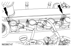 22. Detach the 2 wiring harness retainers from the fuel rail and the wiring harness retainer from the valve cover.
