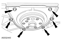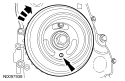 NOTICE: The crankshaft sprocket diamond washer may come off with the crankshaft pulley. The diamond washer must be replaced; remove and discard the diamond washer. If the diamond washer is not installed, engine damage may occur.
