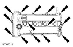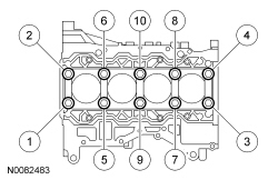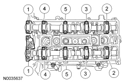 - Loosen the camshaft bearing bolts in the sequence shown, one turn at a time. Repeat until all the tension is released.