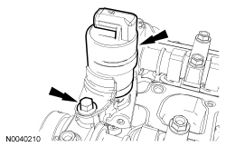 72. Remove the bolt and the Variable Camshaft Timing (VCT) solenoid.
