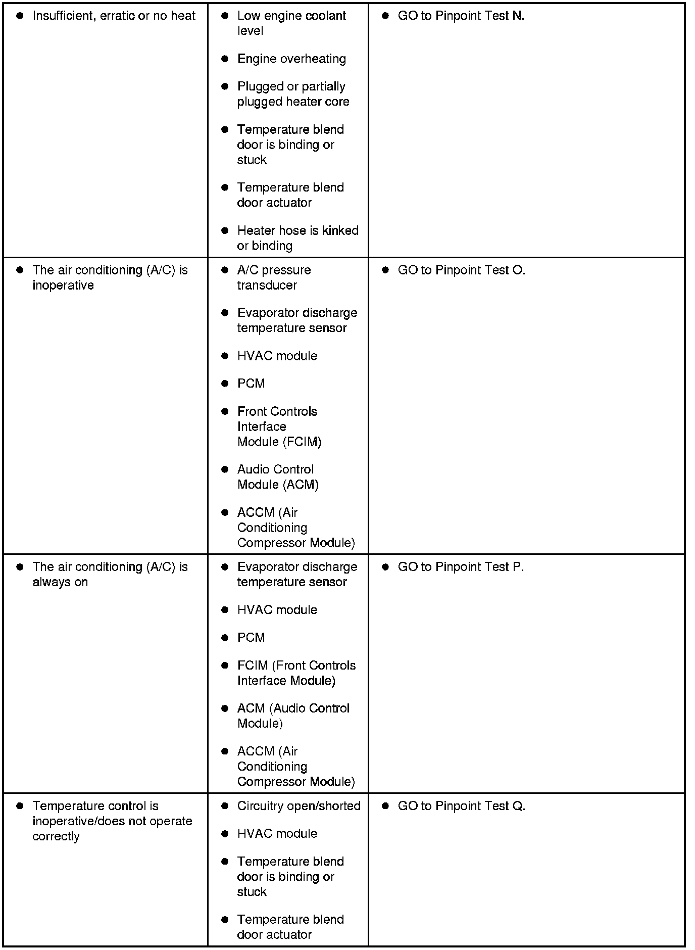 Symptom Chart - Climate Control Systems