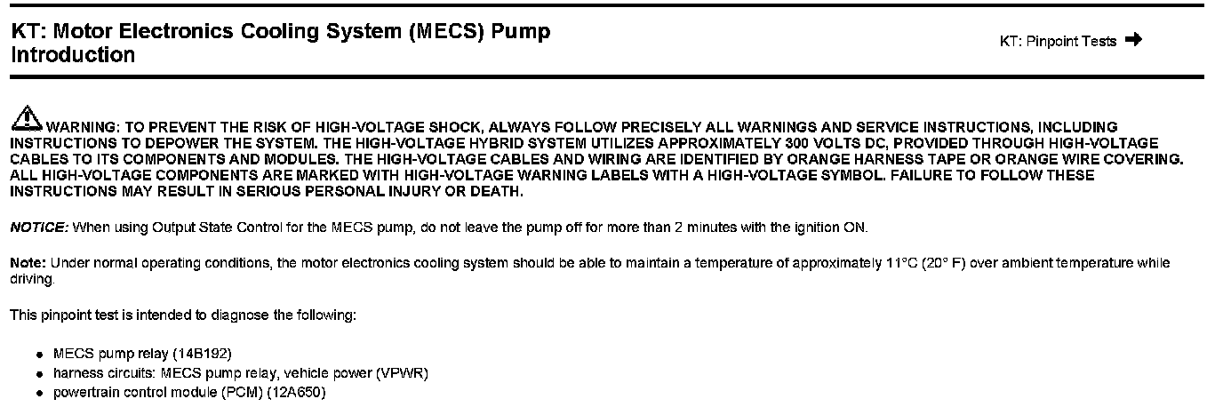Test KT: Motor Electronics Cooling System (MECS) Pump