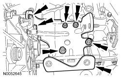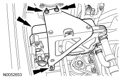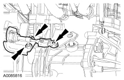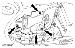 54. Position the PTU (Power Transfer Unit) -to-engine support bracket and install the bolts.