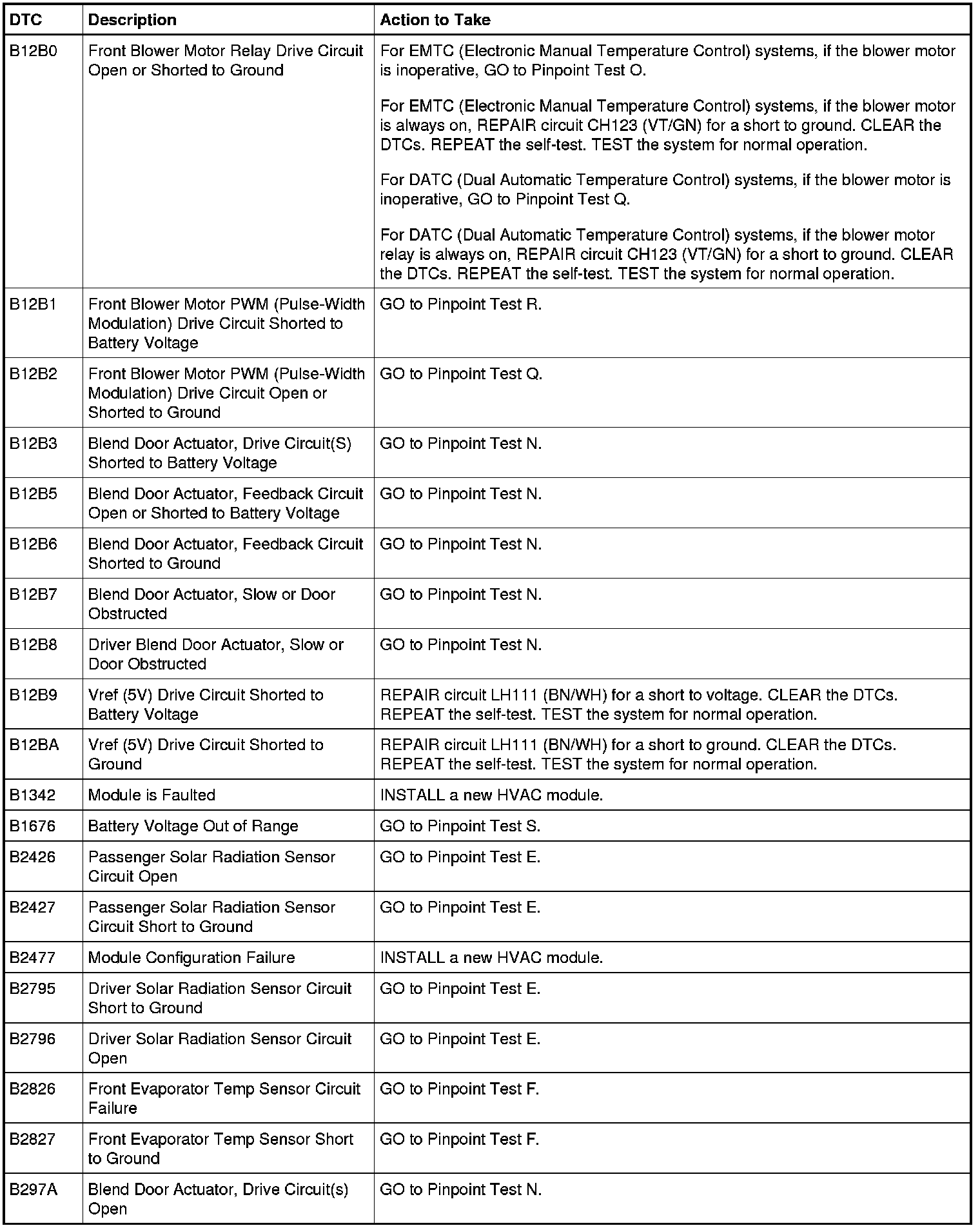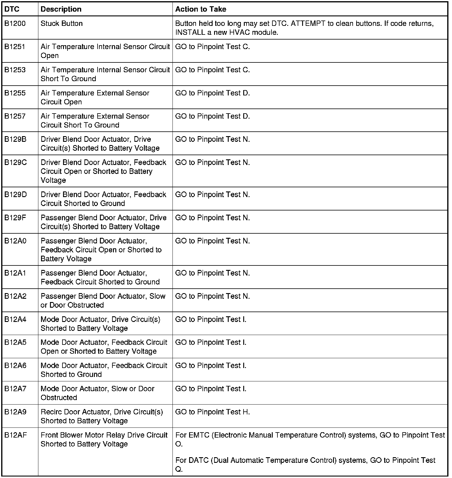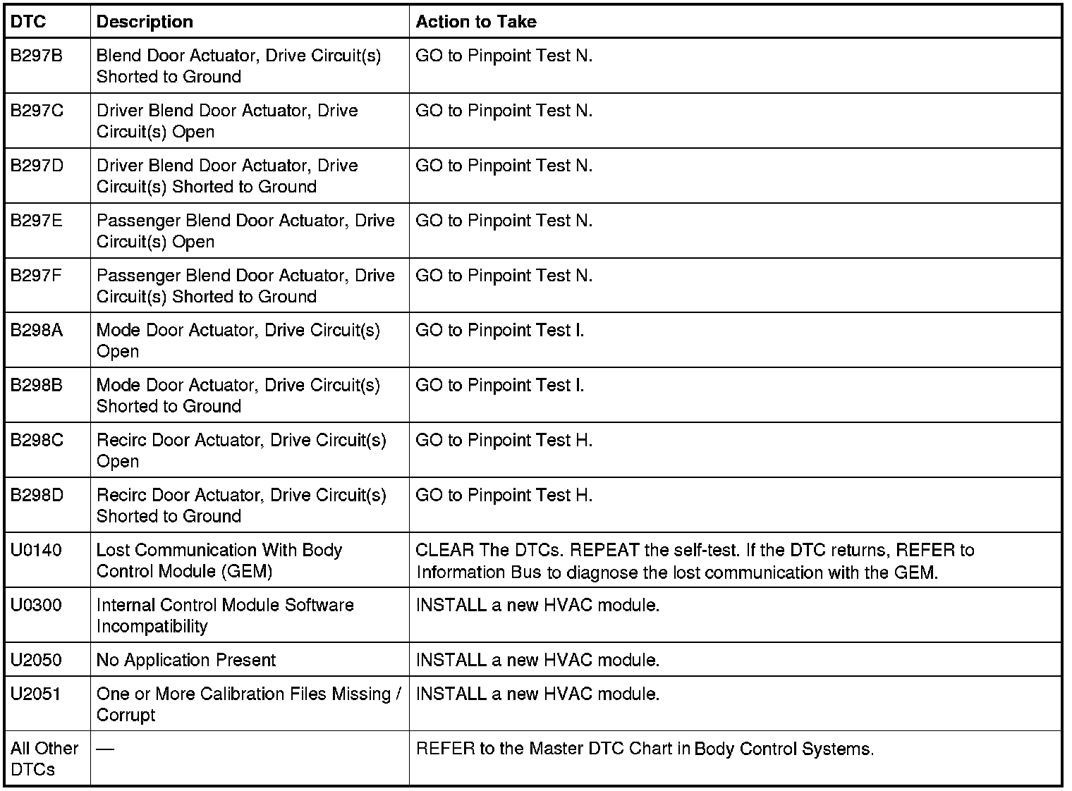 HVAC Module DTC Chart