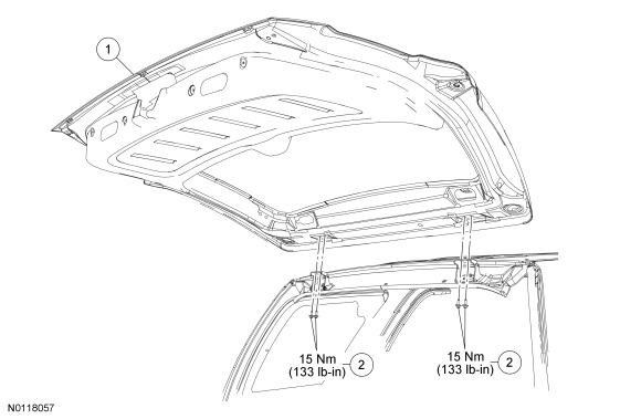 8. NOTICE: Support the liftgate before removing the liftgate struts. Failure to follow this direction may result in damage to the components.