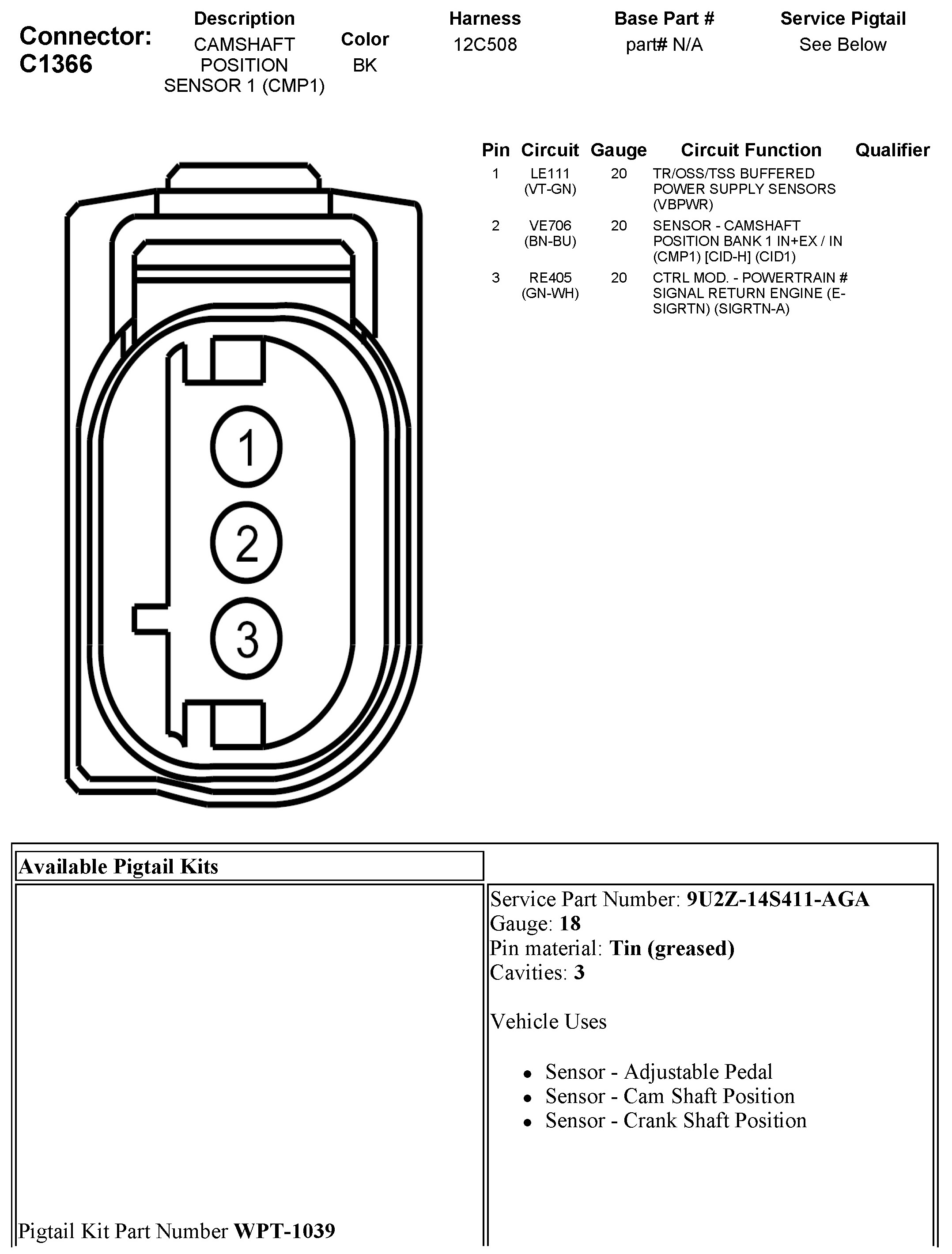 C1366 Camshaft Position Sensor 1 (CMP1)
