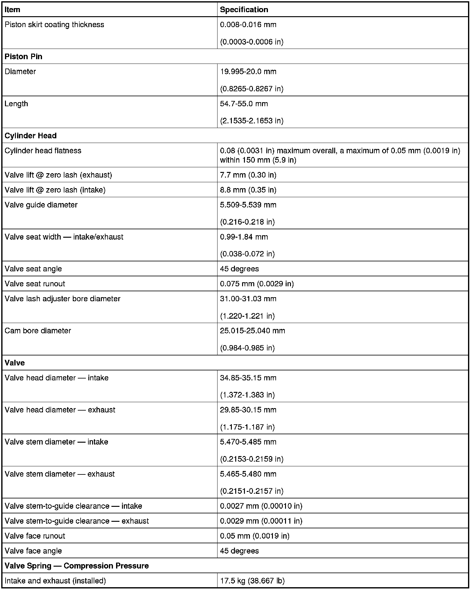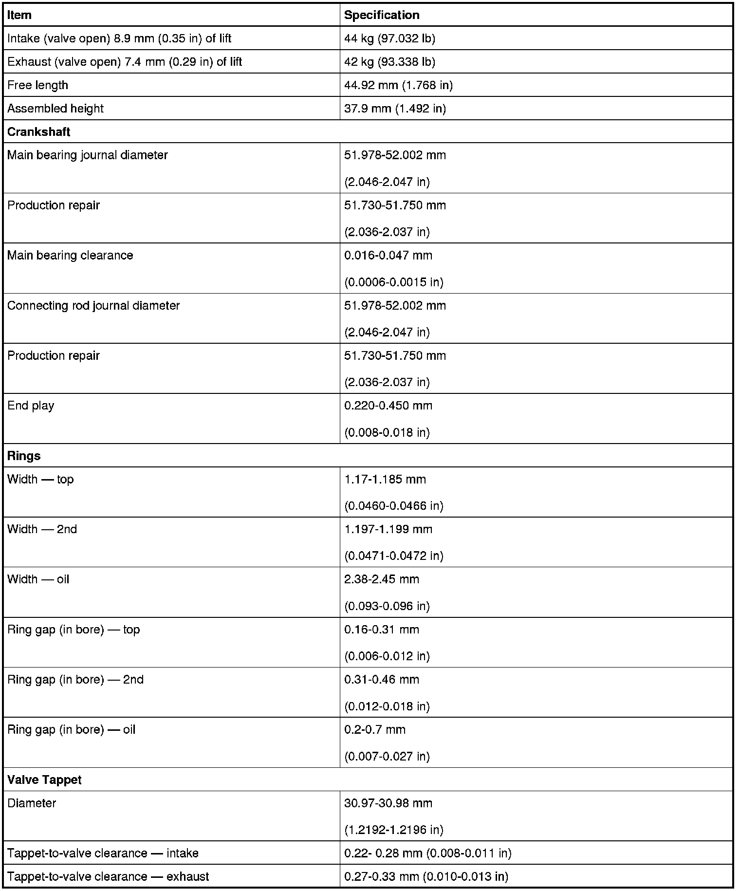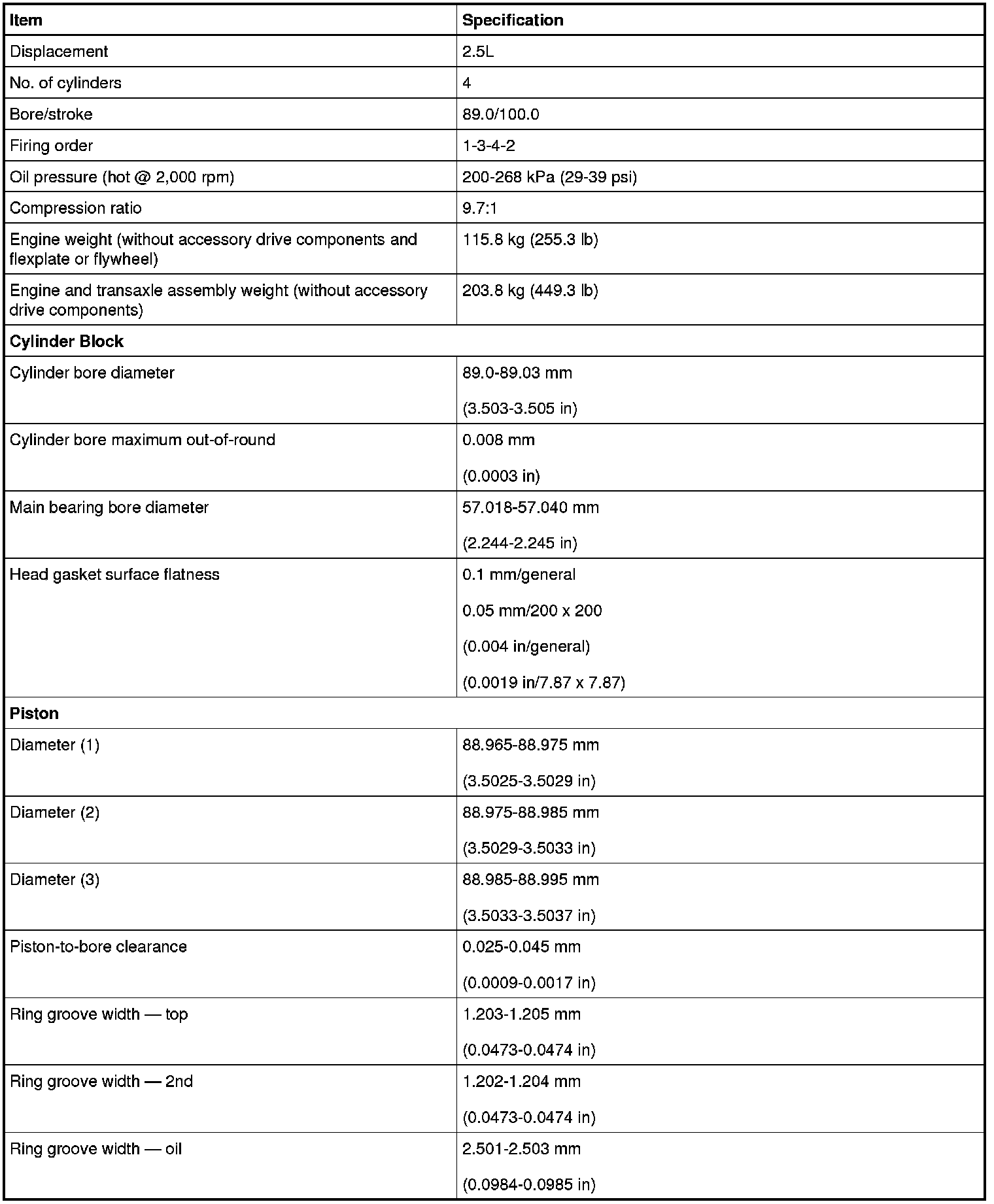 Engine Specifications