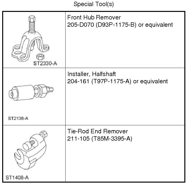 8. NOTICE: Do not tighten the front wheel hub nut with the vehicle on the ground. The nut must be tightened to specification before the vehicle is lowered onto the wheels. Wheel bearing damage will occur if the wheel bearing is loaded with the weight of the vehicle applied.