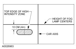 3. The correct visual aim for the fog lamps is with the top edge of the high-intensity zone 10 cm (4 in) below the horizontal center of the fog lamps.