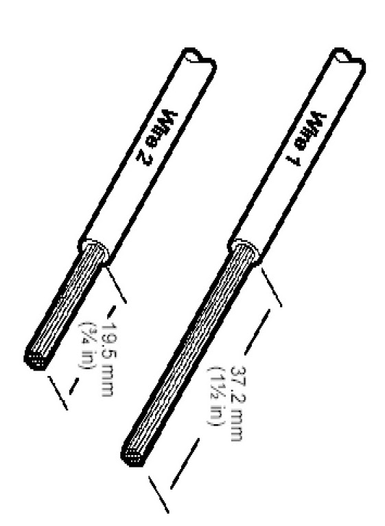 2. Strip 6.35mm (1/4 in) of insulation from each wire end, taking care not to nick or cut wire strands.