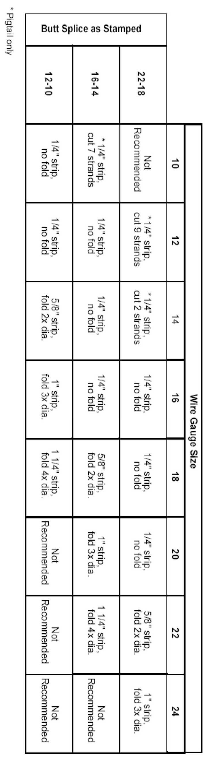 Recommended splicing method - Crimp (For 10-22 AWG Diameter Wire to Like Wire Diameter)