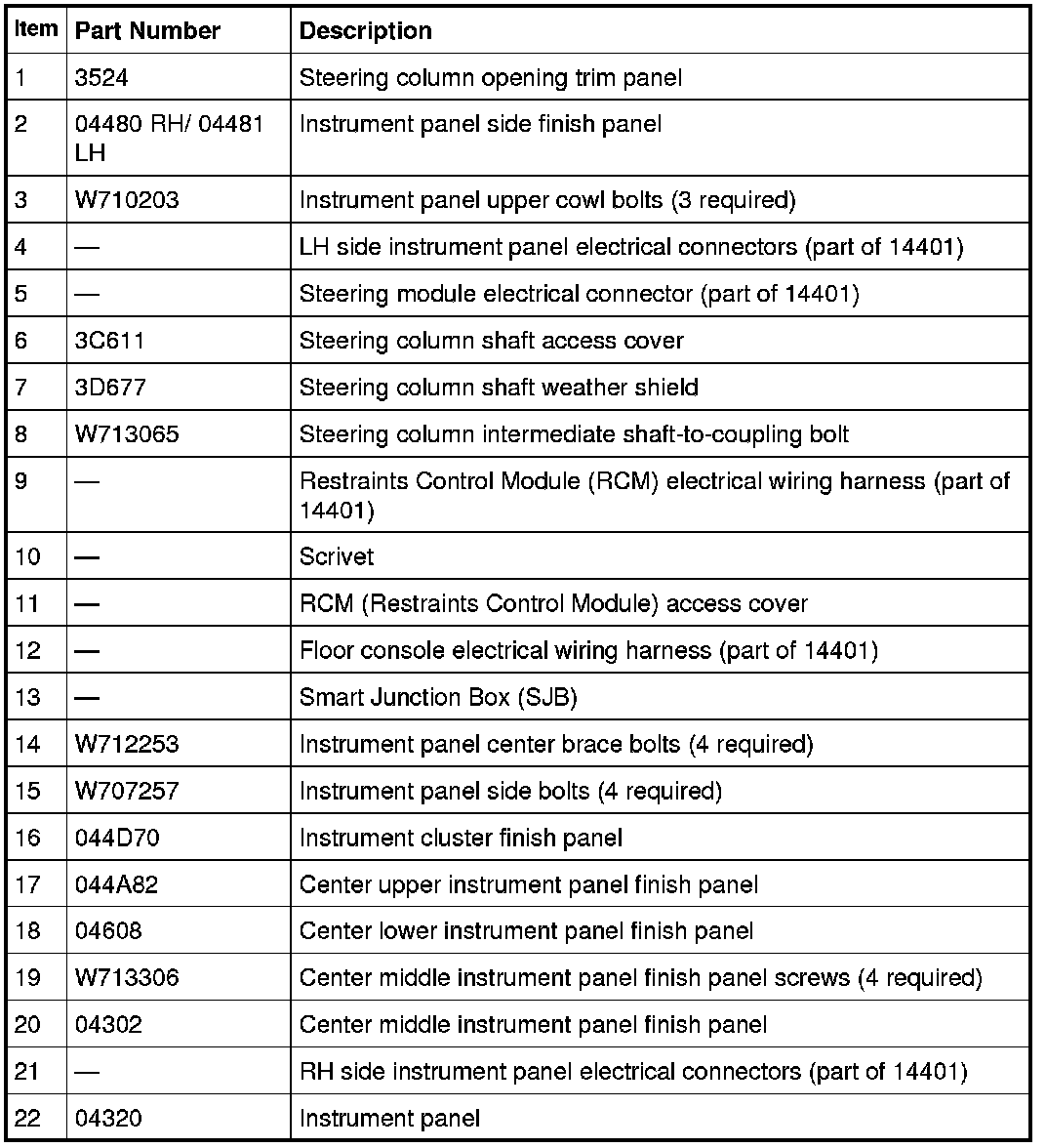 Instrument Panel - Exploded View