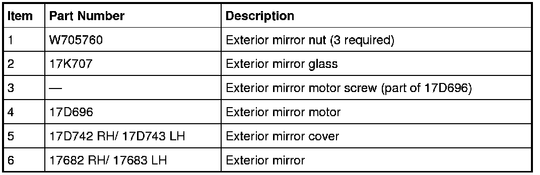 For additional information on the mirror mounted puddle lamps and turn signals, refer to Lighting and Horns.