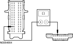 - Measure the resistance between the SJB (Smart Junction Box) C2280B-37, circuit VDB06 (GY/OG), harness side and the Data Link Connector (DLC) C251-3, circuit VDB06 (GY/OG), harness side.