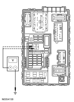 - Measure the voltage between SJB (Smart Junction Box) C2280C-1, circuit SDC04 (RD), harness side and ground.
