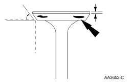 2. Inspect for abnormalities on the valve face and seat. Install a new cylinder head assembly if abnormalities are found.