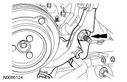 3. NOTICE: Only use hand tools when tightening the engine support insulator nuts or the engine support insulator may be damaged.