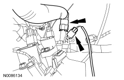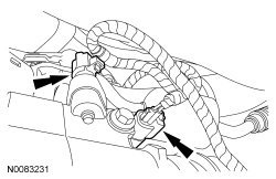 24. Connect the RH VCT (Variable Camshaft Timing) solenoid and the RH radio ignition interference capacitor electrical connectors.