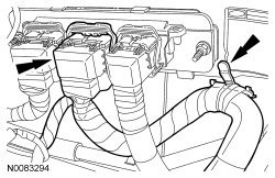 23. Connect the 4 RH ignition coil electrical connectors and the 2 engine wiring harness retainers to the RH valve cover studs.