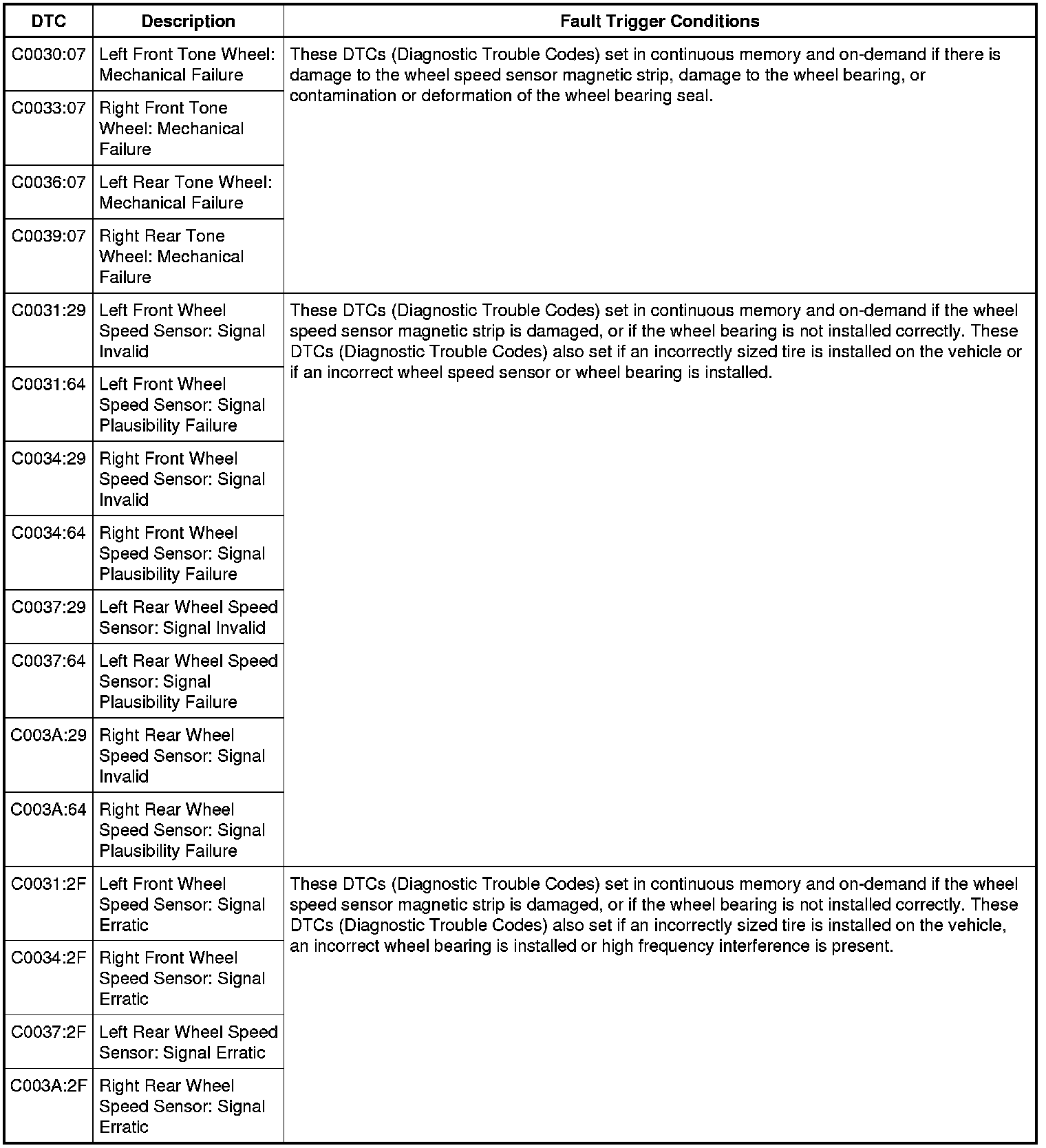 Wheel Speed Sensor Erratic Signal DTCs