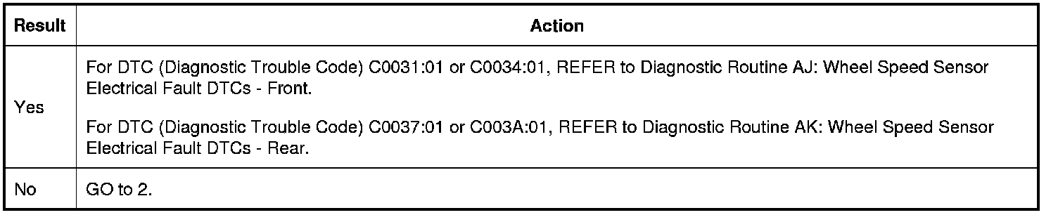 Is DTC (Diagnostic Trouble Code) C0031:01; C0034:01; C0037:01 and/or C003A:01 present?