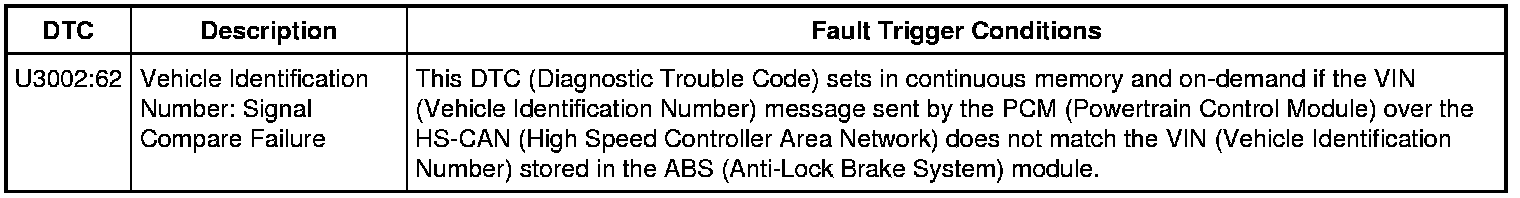 With the ignition ON, the ABS (Anti-Lock Brake System) module and the PCM (Powertrain Control Module) share VIN (Vehicle Identification Number) information over the HS-CAN (High Speed Controller Area Network).