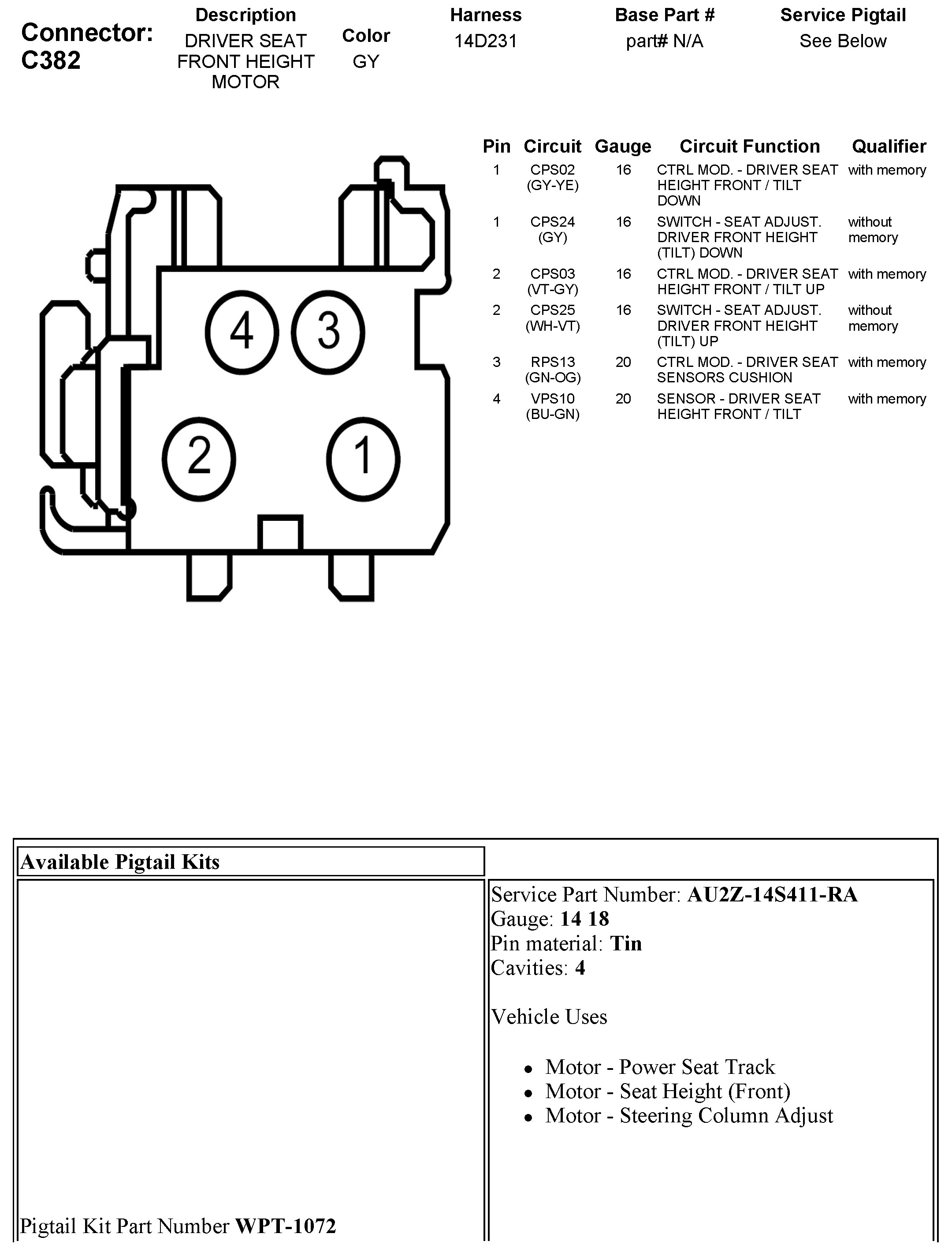 C382 Driver Seat Front Height Motor