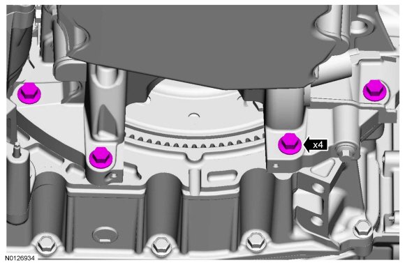 18. Remove the 4 oil pan-to-bellhousing bolts.