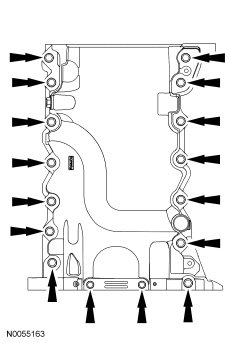 11. Install the remaining oil pan bolts and tighten in the sequence shown.