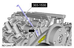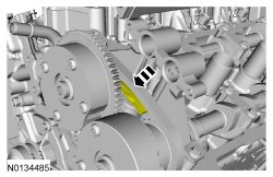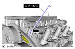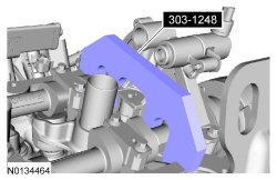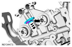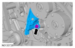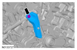 13. Remove and discard the LH (Left Hand) secondary timing chain tensioner shipping clip.